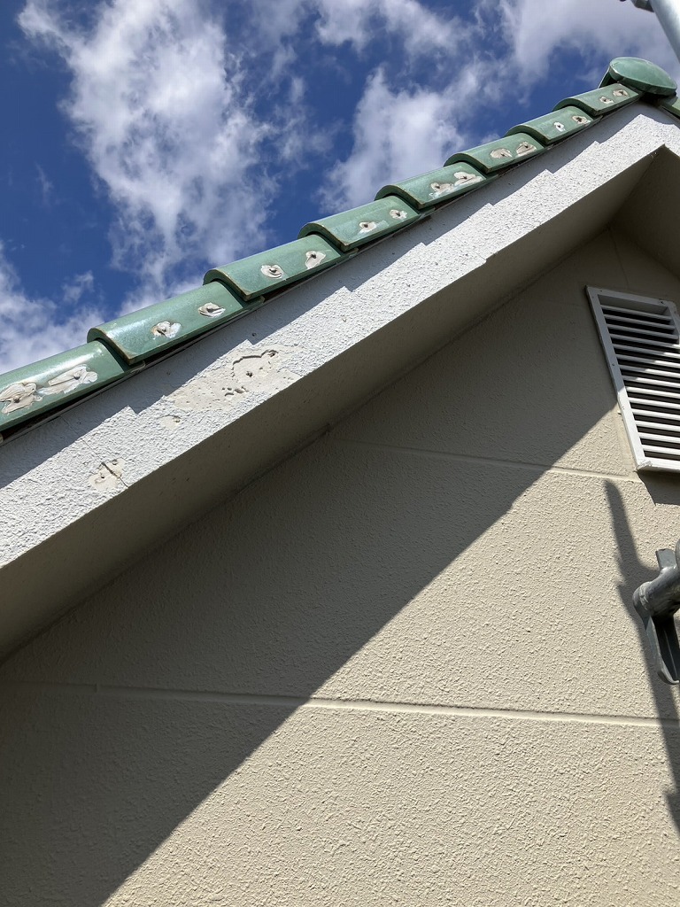 破風に数か所塗膜の剥がれが見られます。放置すると屋根の内部への浸水や軒天の腐食などの問題が発生する恐れがあります。