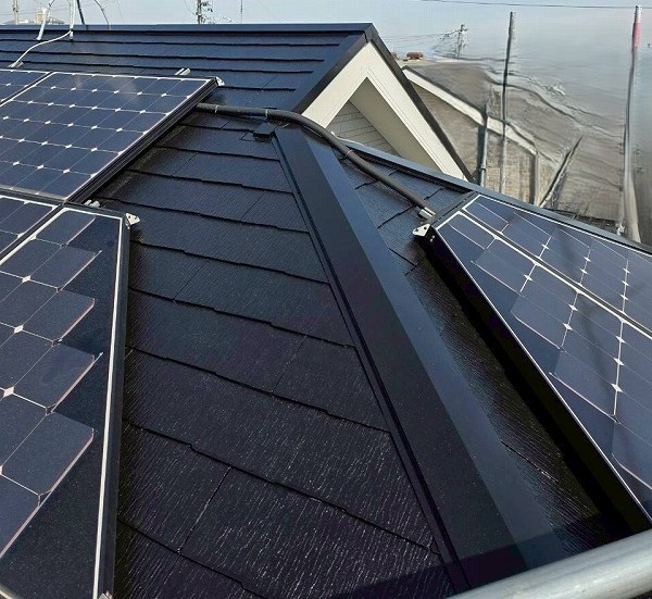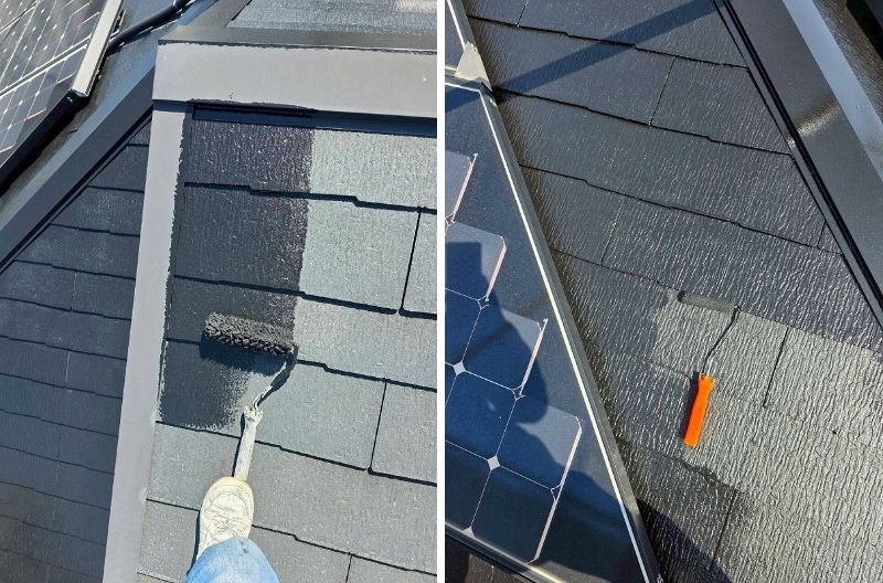 また屋根は建物の中でも直射日光に照らされる部分ですが、今回使用のスーパームキコートシリーズは紫外線に強い高耐久塗料で、その中でもルーフは更に耐候性をアップした超耐候性の塗料です。