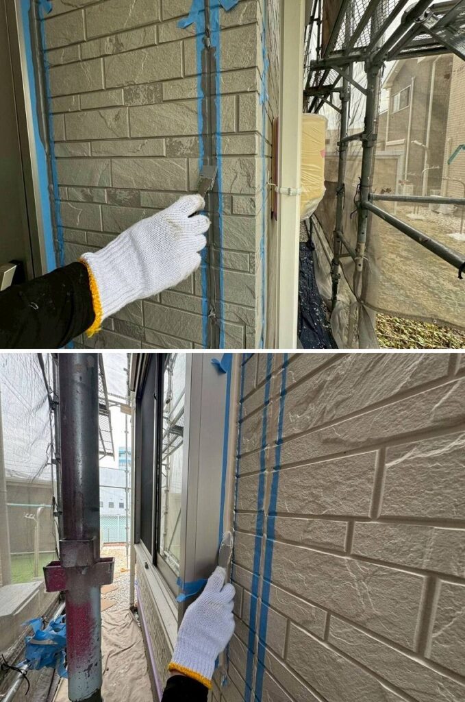 シーリングです。まずは劣化したシーリングを撤去します。