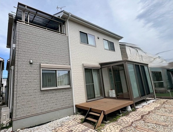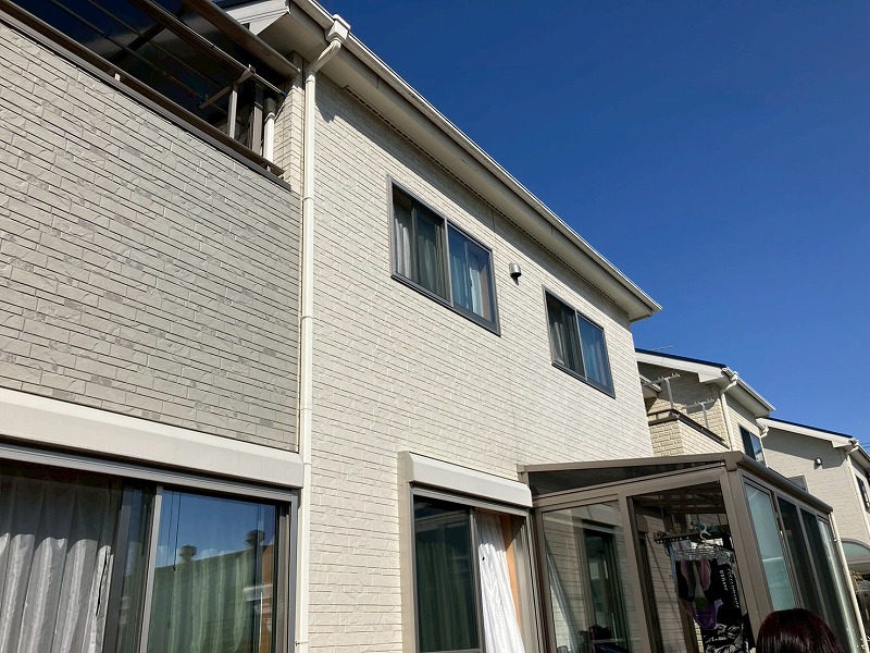 外壁・屋根・付帯部とも全てスーパームキコートシリーズで塗装させていただきました。当社推奨のスーパームキコートは、紫外線に強く、耐候性の高い無機系塗料で、20年以上経過しても高光沢保持が期待できます。