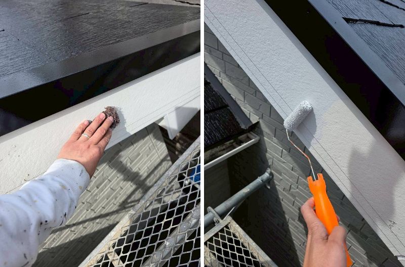 軒天は水性通気塗料で塗装します。