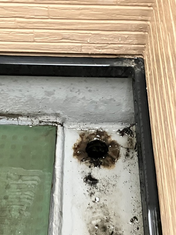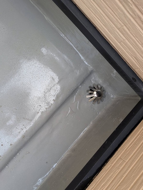 2ケ所の排水口には落ち葉やゴミの侵入を防ぐストレーナーを新設しました。