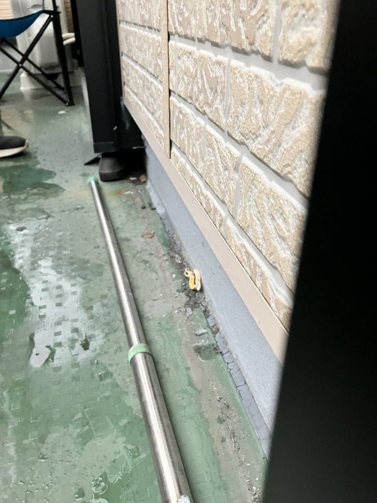 ベランダと外壁の境目(立ち上がり部)のシーリングに、ひび割れや剥がれが生じています。